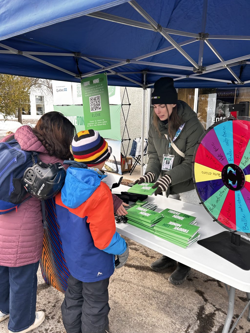 Les 1er, 2, 3 et 7 mars derniers, Trouve ton monde était présent à la Place des Jeux pour offrir une expérience interactive et ludique aux compétiteurs, aux familles et aux nombreux spectateurs présents. L’équipe de Près de toi et des représentants de différentes régions du Québec ont animé le kiosque et guidé les participants à travers le jeu. Plus de 400 personnes se sont arrêtées au kiosque Trouve ton monde pour en apprendre davantage sur la formation professionnelle.